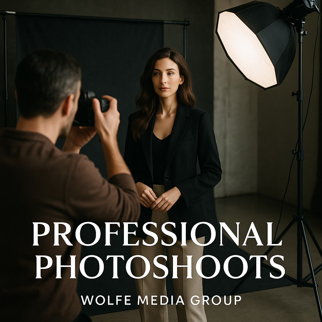Our Services Shop Photoshoot from $300.00 Select Photoshoot In Studio On Location Add To Cart Added! Bulk/Batch Editing from $250.00 Select # of Images For up to 150 images For up to 300 images For up to 450 images Add To Cart Added! Digital Guides & Tools $9.00 Add To Cart Added! Photo Editing & Content Creation Consultation from $99.00 Select Type 30 minutes 60 minutes Add To Cart Added! Wolfe Media Logo Tee, Distressed US Flag Sleeve, Unisex Short Sleeve Shirt, Black Print Graphic Shirt, Monochrome Tee from $30.00 View Options Under Armour® Men's Polo Shirt (Embroidery) from $88.25 View Options Wolf Graphic Snapback Trucker Cap | Stylish Outdoor Hat, Perfect Gift for Animal Lovers, Ideal for Hiking, Camping, Festivals $22.98 View Options